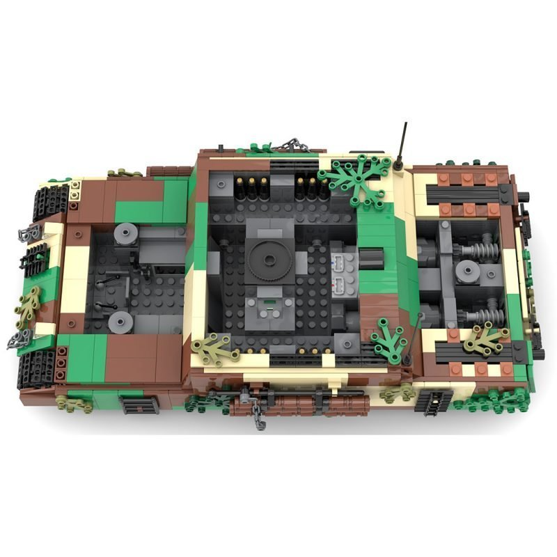 The O-I was Japanese super heavy tank of the second world war. Whether or not an actual prototype was constructed of the massive 150 ton tank is not completely clear, but to this day a single track link still exists for the tank. The set comes with build in power functions which allow you to drive the tank around remotely. The battery pack in located in the center of the tank, with two electric motors in the back and a IR receiver on the top, just behind the main turret.