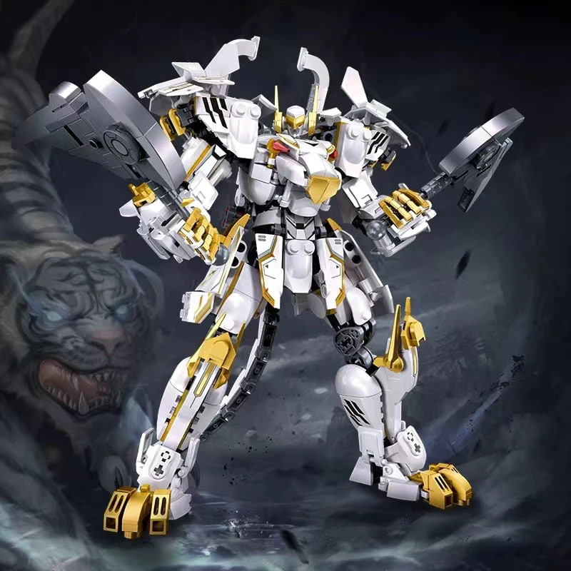 The White Tiger Mecha would embody the majestic and fierce qualities of the mythical creature it represents. Its design would feature a sleek and powerful white body adorned with intricate patterns and symbols reminiscent of ancient Chinese art and mythology. The overall appearance would exude strength, elegance, and nobility. As a mecha, the White Tiger would possess advanced combat capabilities suited for both close-quarters combat and ranged engagements. It could be equipped with razor-sharp claws, fangs, and tail for melee attacks, while also boasting powerful ranged weapons such as energy cannons or projectile launchers.